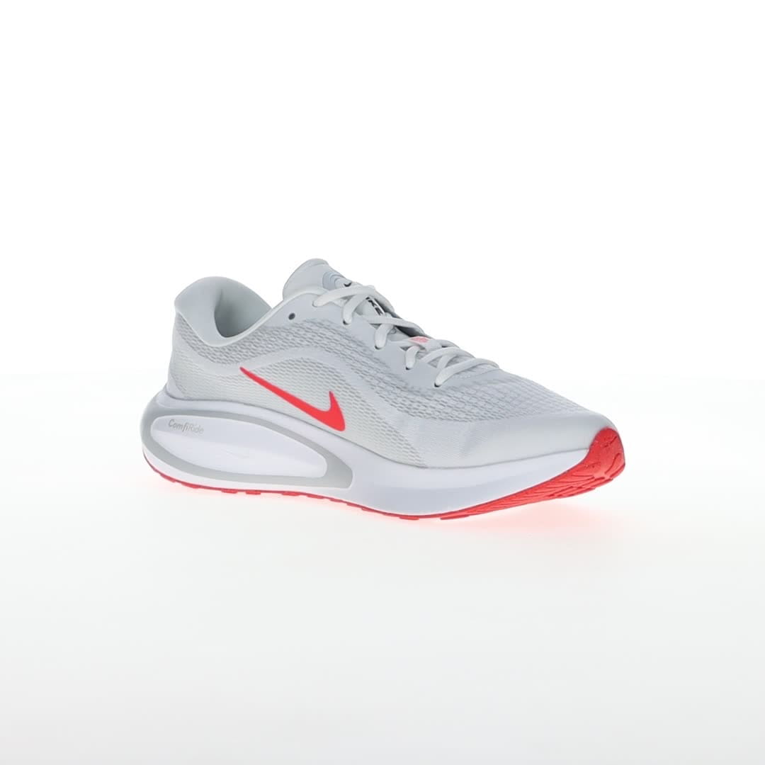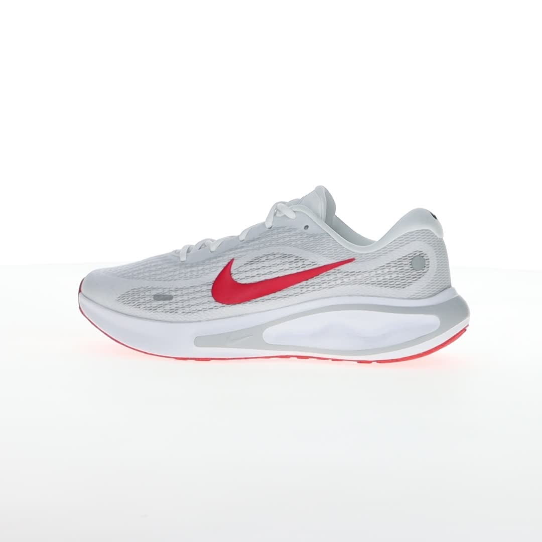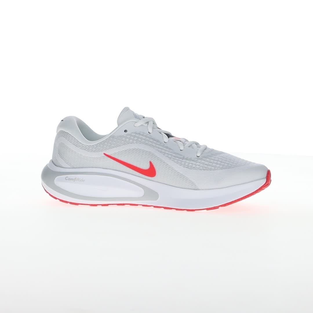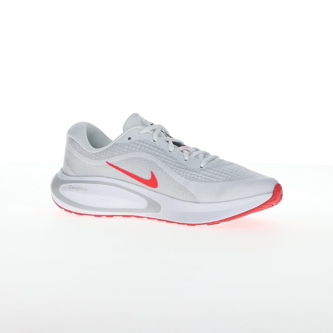 Pridružite se zabavi i uživajte u trčanju sa Nike Journey Run patikama. Navešće vas da se smejete dok koračate ulicama i trotoarima, zahvaljujući izuzetno visokim naslagama pjene i super mekom jastuku, koji će čuvati vaše noge. Sveukupni motiv udobnosti ostaviće vas da se osjećate svježe, energično i da se radujete sledećem trčanju. Gornjište je napravljeno od projektovane mreže, koja pomaže vašim stopalima da se osjećaju sigurno, ali bez trenja. Konturno krojenje je prozračno i lagano. Dovoljno mekanog jastuka pruža pouzdanu stabilnost, posebno kada vaša stopala neprestano udaraju po tvrdim, neumoljivim površinama. Konstruisana mreža u predjelu prstiju pruža dodatnu izdržljivost u oblasti koja se često haba. Đon je napravljen od gume Nike Grind za odlično prianjanje na putu.