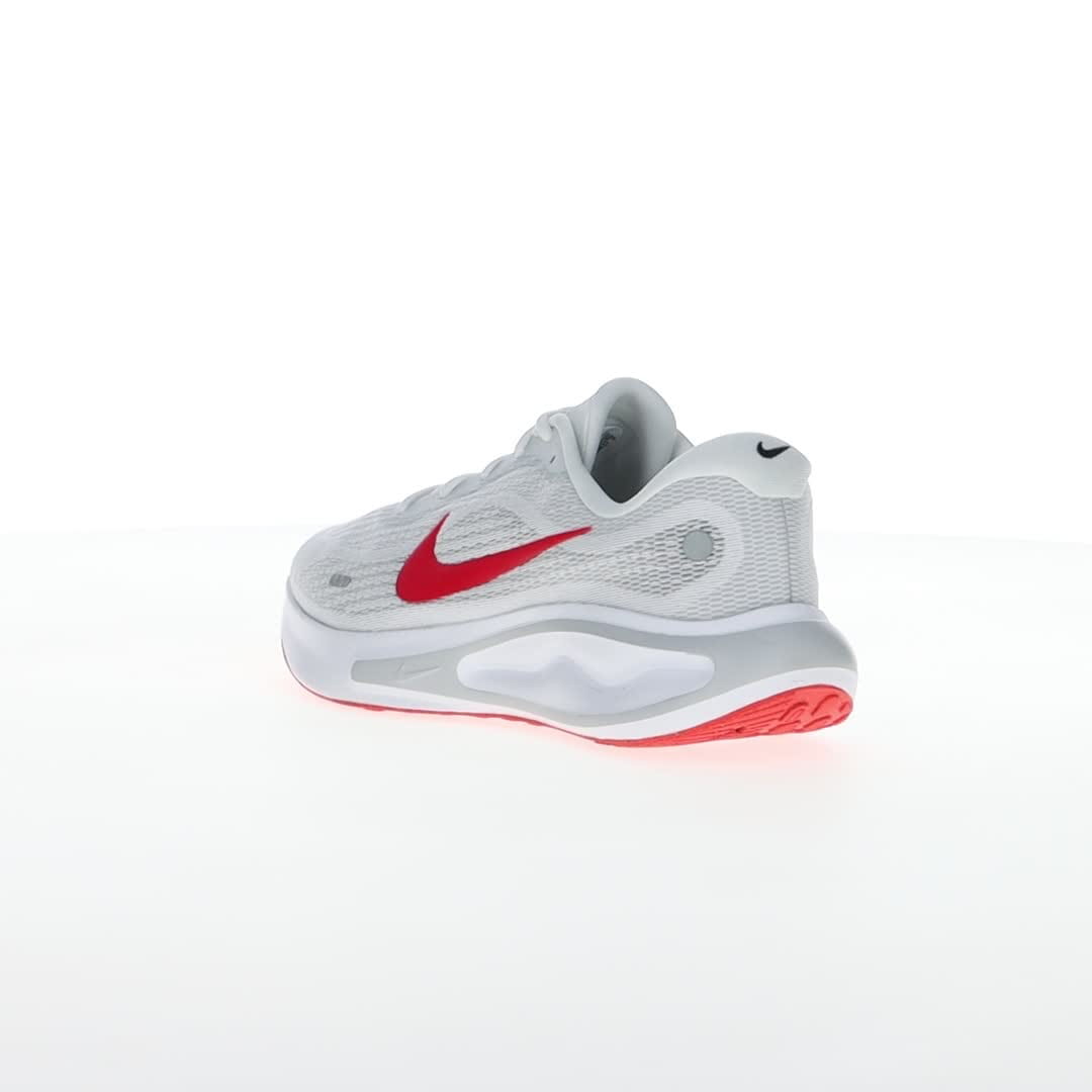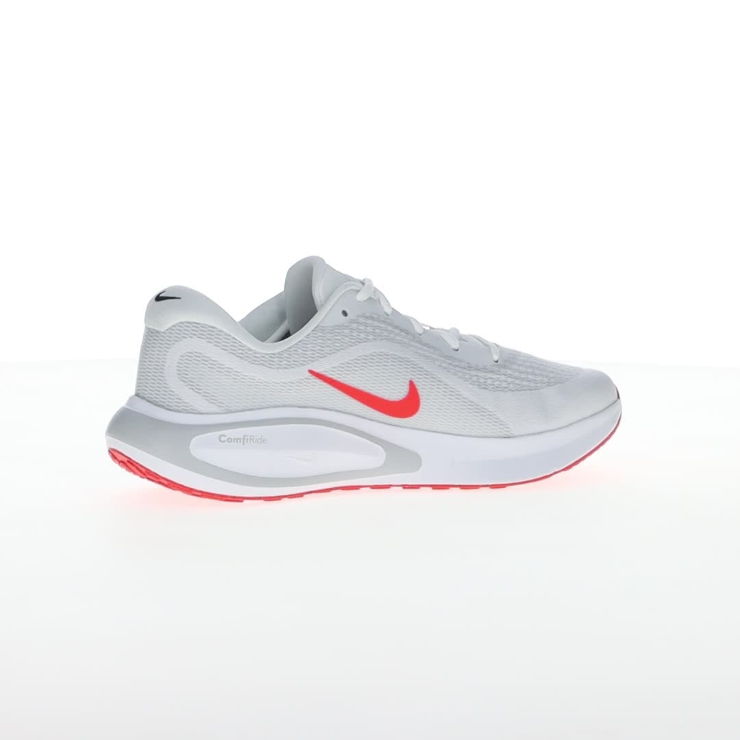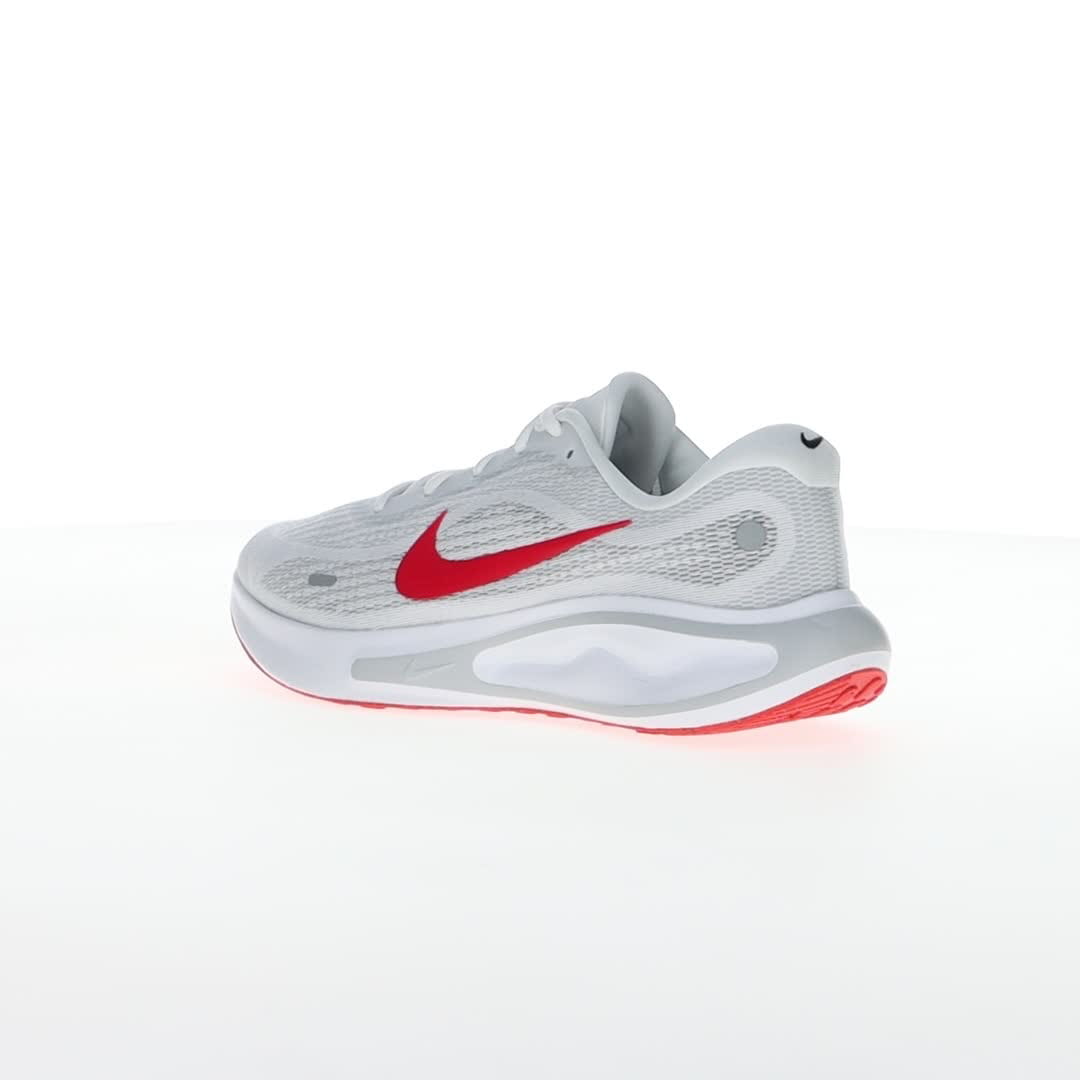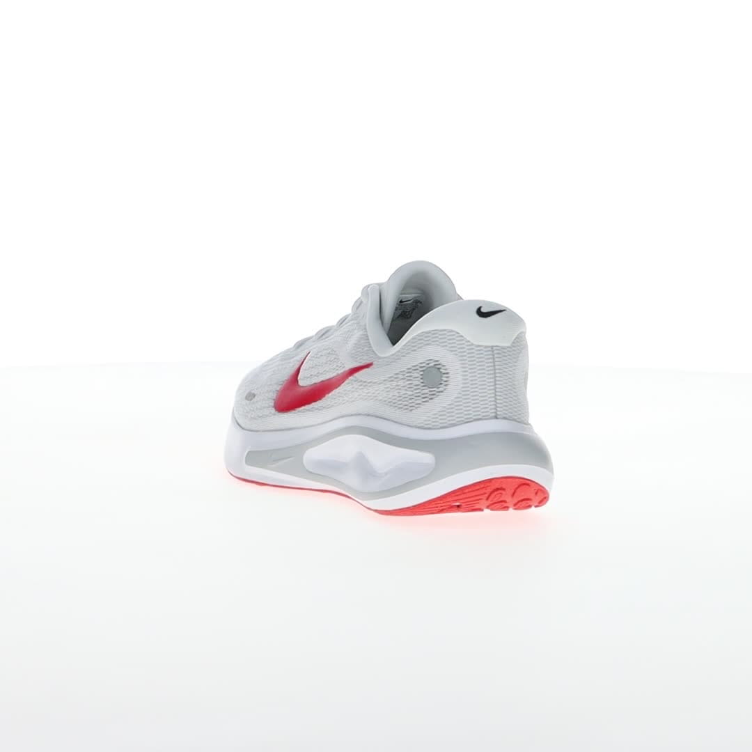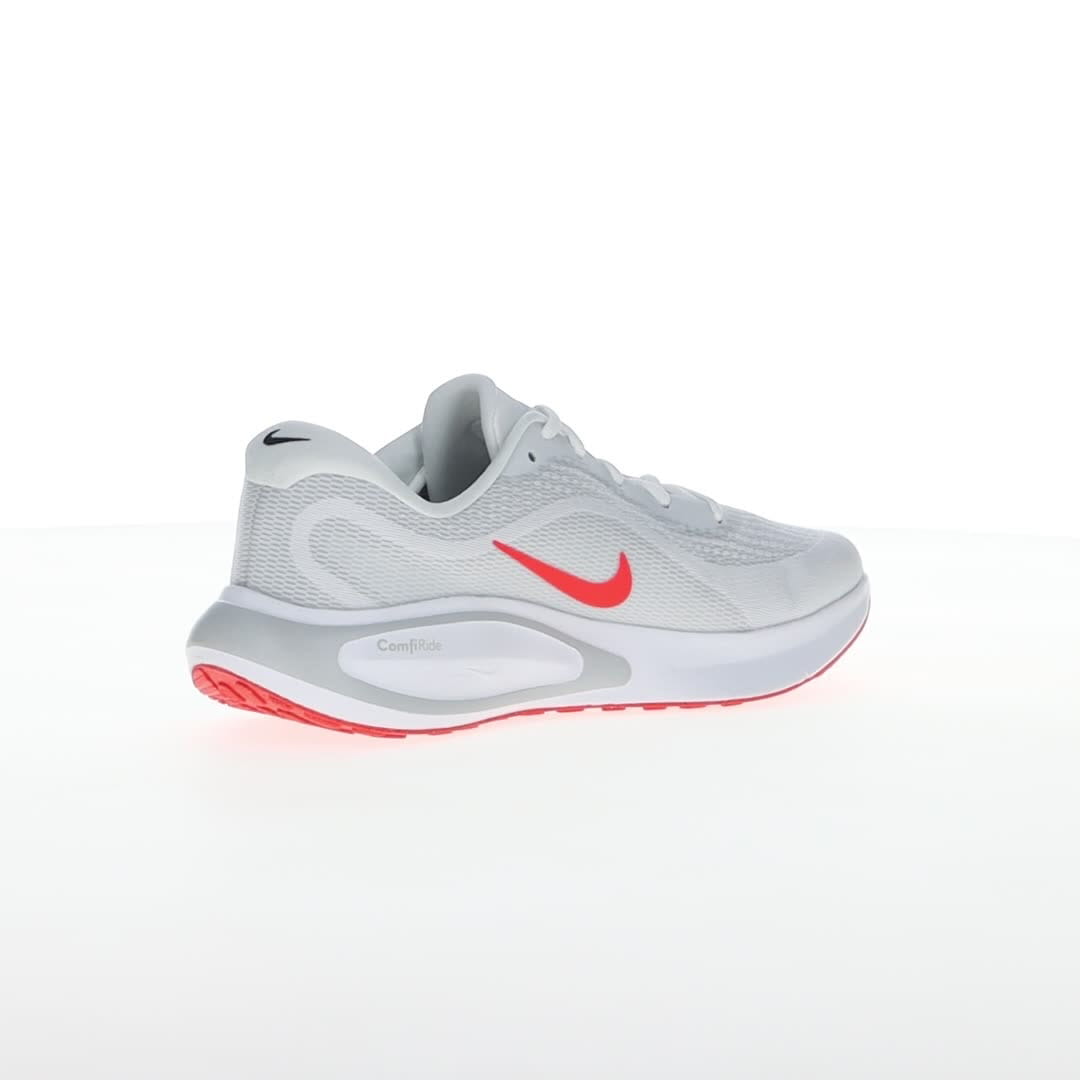 Pridružite se zabavi i uživajte u trčanju sa Nike Journey Run patikama. Navešće vas da se smejete dok koračate ulicama i trotoarima, zahvaljujući izuzetno visokim naslagama pjene i super mekom jastuku, koji će čuvati vaše noge. Sveukupni motiv udobnosti ostaviće vas da se osjećate svježe, energično i da se radujete sledećem trčanju. Gornjište je napravljeno od projektovane mreže, koja pomaže vašim stopalima da se osjećaju sigurno, ali bez trenja. Konturno krojenje je prozračno i lagano. Dovoljno mekanog jastuka pruža pouzdanu stabilnost, posebno kada vaša stopala neprestano udaraju po tvrdim, neumoljivim površinama. Konstruisana mreža u predjelu prstiju pruža dodatnu izdržljivost u oblasti koja se često haba. Đon je napravljen od gume Nike Grind za odlično prianjanje na putu.
